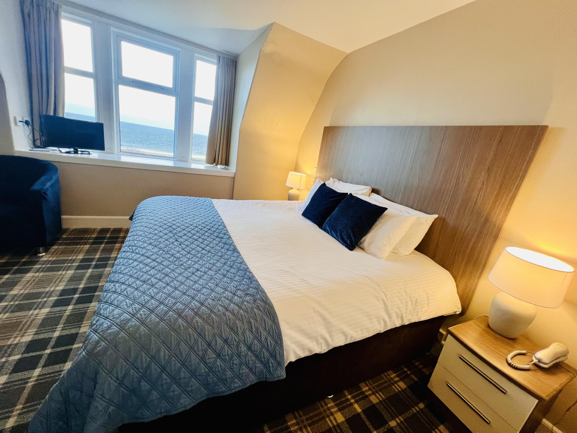 After many years passing hotel we decided to book a couple of nights to celebrate emerald wedding anniversary. On arrival given choice of rooms. Decided on larger room with big bay widow with sea view. Quality food with renowned cullen skink very much appreciated. Staff ratings very high.